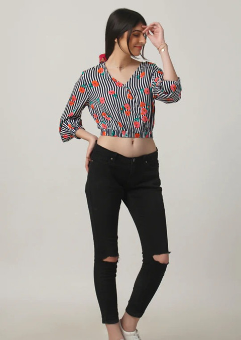 Striped Floral Wrap Top