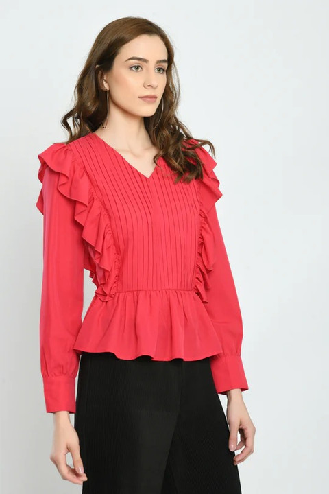 Fucshia Ruffle Pleated Top