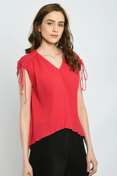 Fucshia Pleated Tie-Up Top