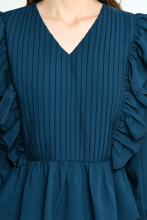 Deep Green Ruffle Pleated Top