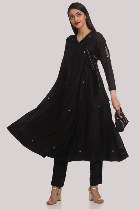 Black Chanderi Angrakha Set