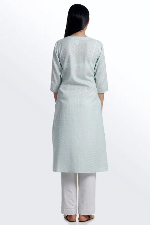 Paisley Jacquard Kurta Pants Set - Pastel Blue